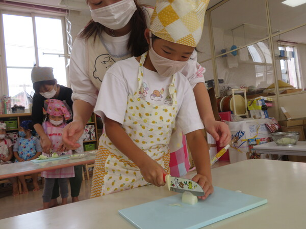 クッキングは3歳以上児が楽しみにしている一大イベント!美味しいカレーをみんなで作ろうね