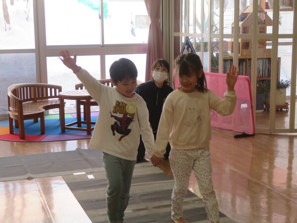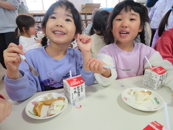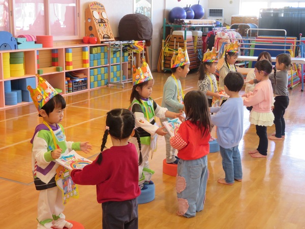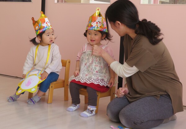 誕生会では、2月生まれのお友だちが嬉しそうにインタビューを受け、「大きくなったらなりたいもの」「好きなもの」を答えていました😊
