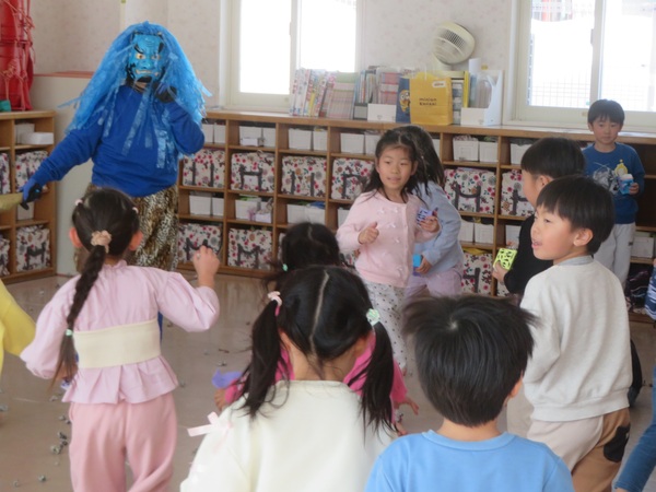 最後には、たくましい年長組の子どもたちが、豆まきをしてしっかり鬼退治をしてくれました💕